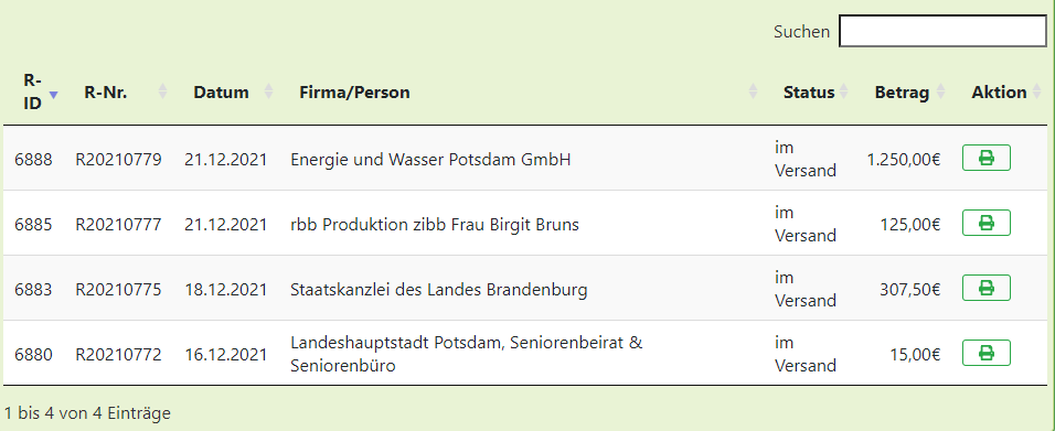 Die neue Rechnungssuche findet man unter „Rechnungen“ -> „Suche“