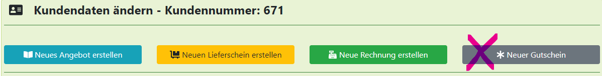 - Mit dem Klick auf „Neuer Gutschein“ wird für diesen Kunden ein Gutschein erstellt